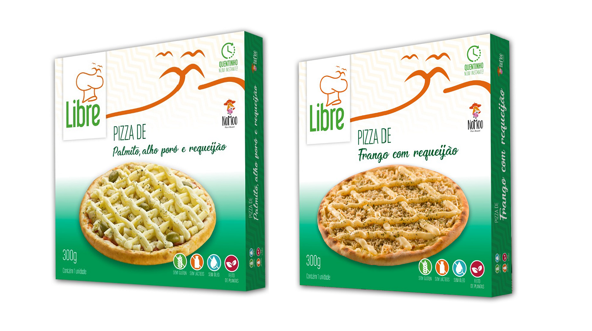 A Libre incluiu dois sabores de pizza em seu portfólio de produtos: palmito e alho-poró com requeijão, e frango com requeijão, sendo ambas isentas de glúten e de lactose.