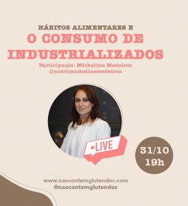 Aconteceu, na noite de hoje (31), uma live no Instagram do projeto multiplataforma Não Contém Glúten, idealizado pela estudante de Comunicação e produtora audiovisual Kethleen Formigon, de Juiz de Fora (MG), com a presença da nutricionista funcional Micheline Medeiros, de Recife (PE), especialista em desordens relacionadas ao glúten. Entrevistando a profissional, Kethleen abordou principalmente hábitos alimentares saudáveis e questionou o consumo de alimentos industrializados e seus impactos na vida do celíaco.